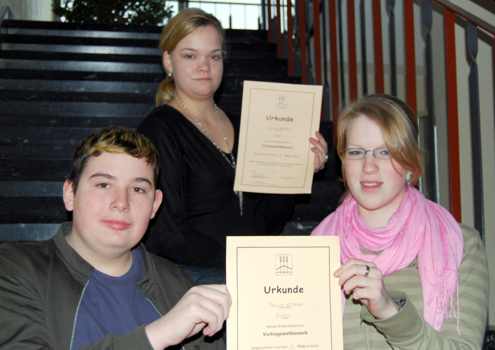 Platzierten sich beim Vortragswettbewerb der BBS Lüchow ganz vorn (von links): Patrick Wittleben (Platz 1), Janina Wedhorn (Platz 3) und Denise Constabel (auch Platz 1). - Aufnahme: J. Hanspach