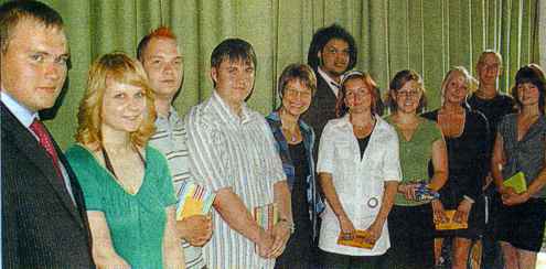 Schulleiterin llka Burkhardt-Liebig (Fünfte von links) zeichnete gestern während der Abschiedsfeier die Klassenbesten mit Buchpreisen (von links): Adrian Bärge, Ines Techand, Simon Schmidt, Carsten Neuschulz sowie (von rechts) Cindy Reiß, Christopher Meyer, Laura Mecklenburg, Jaqueline Andreß, Hennamé Dombrowski und Tim Prieto Pena.
