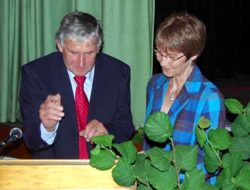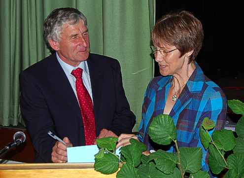 Auch die Verabschiedung in den Ruhestand ist ein Verwaltungsakt, der nach Vorschriften verlangt: Gerd Neubauer und die BBS-Schulleiterin Ilka Burkhardt-Liebig. Aufnahme: J.Hanspach