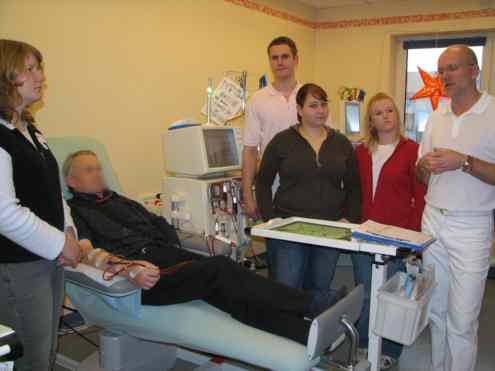 Eine wichtige Unterrichtsmethode in der Ausbildung zur Altenpflegerin und zum Altenpfleger an den BBS Lüchow seien informative und erfahrungsbezogene Besuche in berufsnahen Arbeitsfeldern, erläuterte der Gesundheits- und Pflegepädagoge Michael Fischer. „Die zukünftigen Altenpflegekräfte lernen hier zum Beispiel, sich in die Situation betroffener Dialysepatienten am Therapieort einzufühlen, und verbessern dadurch nachhaltig ihre Informations- und Beratungskompetenz gegenüber den Bewohnerinnen und Bewohnern ihrer Pflegeeinrichtungen und gegenüber den behandelnden Ärzten", betonte Fischer.