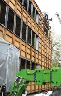 Doch auch der Lärm war wegen der dünnen Wände immer ein Problem - und als sich schließlich nicht einmal mehr die Fenster öffnen ließen, war die Zeit gekommen für eine grundlegende Sanierung des sogenannten Kubus der Berufsbildenden Schulen (BBS) in Lüchow. Für 1,6 Millionen Euro bereitet der Landkreis Lüchow-Dannenberg dem energiefressenden Kubus jetzt ein Ende; bis auf seine Grundform entsteht quasi ein neues Gebäude. Allein für dieses eine Gebäude ließen sich nach der energetischen Sanierung rund 3500 Euro jährlich an Heizkosten sparen, schätzt Manfred Schrodt vom Gebäudemanagement beim Landkreis – etwa ein Drittel weniger Heizkosten als zuvor. Zurzeit sind Bauarbeiter dabei, die alte, äußerst schäbige Fassade abzutragen und durch eine hochwärmegedämmte Holztafelfassade zu ersetzen. Eingebaut werden sollen zudem neue Fenster. Auch das Dach wird neu gedämmt. Die Heizungsanlage wird erneuert, der Schallschutz verbessert. Nachgebessert wird im Sanitärbereich. Mit den Jahren haben immer mehr junge Frauen dieses Gebäude der BBS besucht; jetzt soll es mehr Toiletten für sie geben. Auch an eine behindertengerechte sanitäre Anlage haben die Planer gedacht. Zum neuen Schuljahr sollen die BBS-Schüler den rundum sanierten Kubus beziehen können. Die Fassade begrüßt Besucher des Lüchower Schulviertels dann nicht mehr mit Schimmelgelb, sondern in einem an das Hauptgebäude angepassten rötlichen Ton.