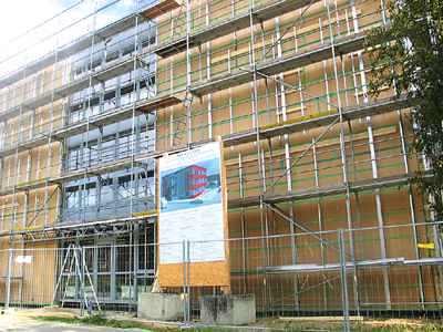 Bild: Offenbar nur geringe Verzögerungen hat es gegeben beim Umbau des so genannten Kubus der Berufsbildenden Schulen in Lüchow. Nächste Woche können die ersten Klassen ins Obergeschoss einziehen. Bis Oktober soll das Gebäude noch mit einer Aluminium-Fassade verschalt werden. Für 1,75 Millionen Euro wird dann ein quasi komplett neues Gebäude entstanden sein.