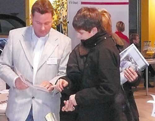 „Karriere mit Lehre“ hieß es im Rahmen der Ausbildungswoche in Dannenberg. BBS-Lehrer Marc Glüsen (l.) informierte über Ausbildungsmöglichkeiten. Aufn.: Ch. Beyer