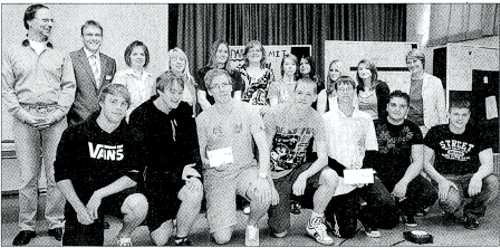 Sichtlich zufrieden mit den nun ausgezeichneten BBS-Schülerinnen und -Schülern sind (hinten, von links) Wettbewerbsinitiator Nikolaus Rahlf, die Unterstützer und Sponsoren Torsten Schulz von der AOK Lüchow, Monika Kohrs-Lichte von der Volksbank Osterburg-Lüchow-Dannenberg, Anke Mangelsdorf von der SKD BKK sowie (hinten rechts) Schulleiterin Ilka Burkhardt-Liebig. Aufn.: J. Hanspach