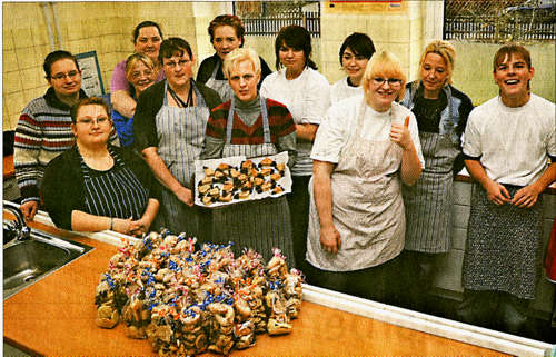 Erst die Arbeit, dann das Vergnügen: Stolz präsentieren die Schülerinnen und Schüler der Berufsfachschule Hauswirtschaft und ihre Gäste das gemeinsam hergestellte Gebäck. Aufn.: J. Flügel