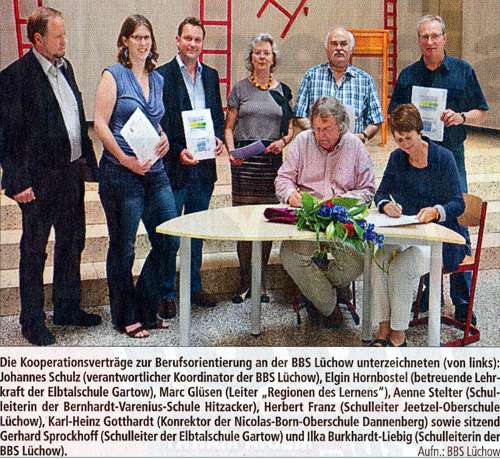 Ergänzend wird der Unterricht in den beruflichen Profilfächern Technik, Wirtschaft, Gesundheit und Soziales durch den Einsatz von berufsbildenden Lehrkräften an den allgemein- bildenden Schulen unterstützt. »Gerade im überschaubaren Landkreis ist es möglich, ein systematisches Übergangsmanagement von der Schule in den Beruf umzusetzen», meint Ilka Burkhardt-Liebig, Schulleiterin der BBS Lüchow. Erste Erfahrungen mit gegenseitigem Austausch von Lehrkräften machten Mut für ein engeres Zusammenrücken der Schulen zugunsten der gemeinsamen Gestaltung einer Bildungskette. Nicht zuletzt gelte es, die Berufs- und Ausbildungsmöglichkeiten im Landkreis bekannter zu machen, Schule und Wirtschaft zunehmend enger zusammen zu bringen und jungen Menschen Perspektiven in der Region zu eröffnen.