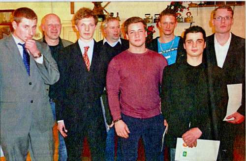 Bei der Freisprechungsfeier der Innung des Kraftfahrzeughandwerks in Rätzlingen wurden folgende Gesellen aus Lüchow-Dannenberg freigesprochen (vorne von links): Florian Dittmer, Jonathan Bünte, Mirco Zöllner, Marcel Bode (von rechts), Gafurr Kastrati und Pierre Kersten. Ihre Berufsschullehrer Sascha Künzel (hinten von links) und Michael Jahrens freuen sich mit den neuen Kraftfahrzeugmechatronikern.