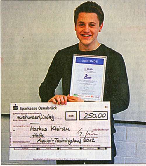 Mit einer Bewerbung Geld verdienen? Das geht, wenn man denn den Arbeitsplatz oder die Ausbildungsstelle bekommt, auf die man sich beworben hat. Dass das aber auch anders geht, hat nun der Elftklässler des Fachgymnasiums Technik der Berufsbildenden Schulen (BBS) Lüchow, Markus Kleinau, erfahren: 250 Euro war seine Bewerbung wert. Beim „Azubi-Trainingslauf" der buw- Unternehmensgruppe aus Halle, die jedes Jahr Bewerbungen sammelt, um so die Chancen auf einen Ausbildungsplatz zu steigern, belegte Markus Kleinau den ersten Platz. Bundesweit reichten knapp 1600 Schülerinnen und Schüler ihre Bewerbungsmappen ein.Geprüft wurde Kleinaus Bewerbung unter anderem auf Layout, Inhalt, Fotoqualität, Sauberkeit, Vollständigkeit, soziales Engagement und Formulierung. Das Urteil der Jury: „Exzellent". Dafür überreichten Andrea Zurstraßen und Marcus Busch vom buw-Standort Halle/Saale am Montag eine Urkunde sowie einen Scheck in den Räumen der Berufsbildenden Schulen. Mit dieser Bewerbung, ist sich der Schüler sicher, werde er sich wohl erfolgreich bewerben können. Auch im Jahr 2013 läuft die Ausschreibung für die beste Bewerbung.