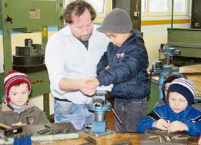 Noch ein bisschen zu jung für die Berufswahl: Auch Kinder des den BBS benachbarten Kindergartens ließen sich handwerkliche Fertigkeiten zeigen.